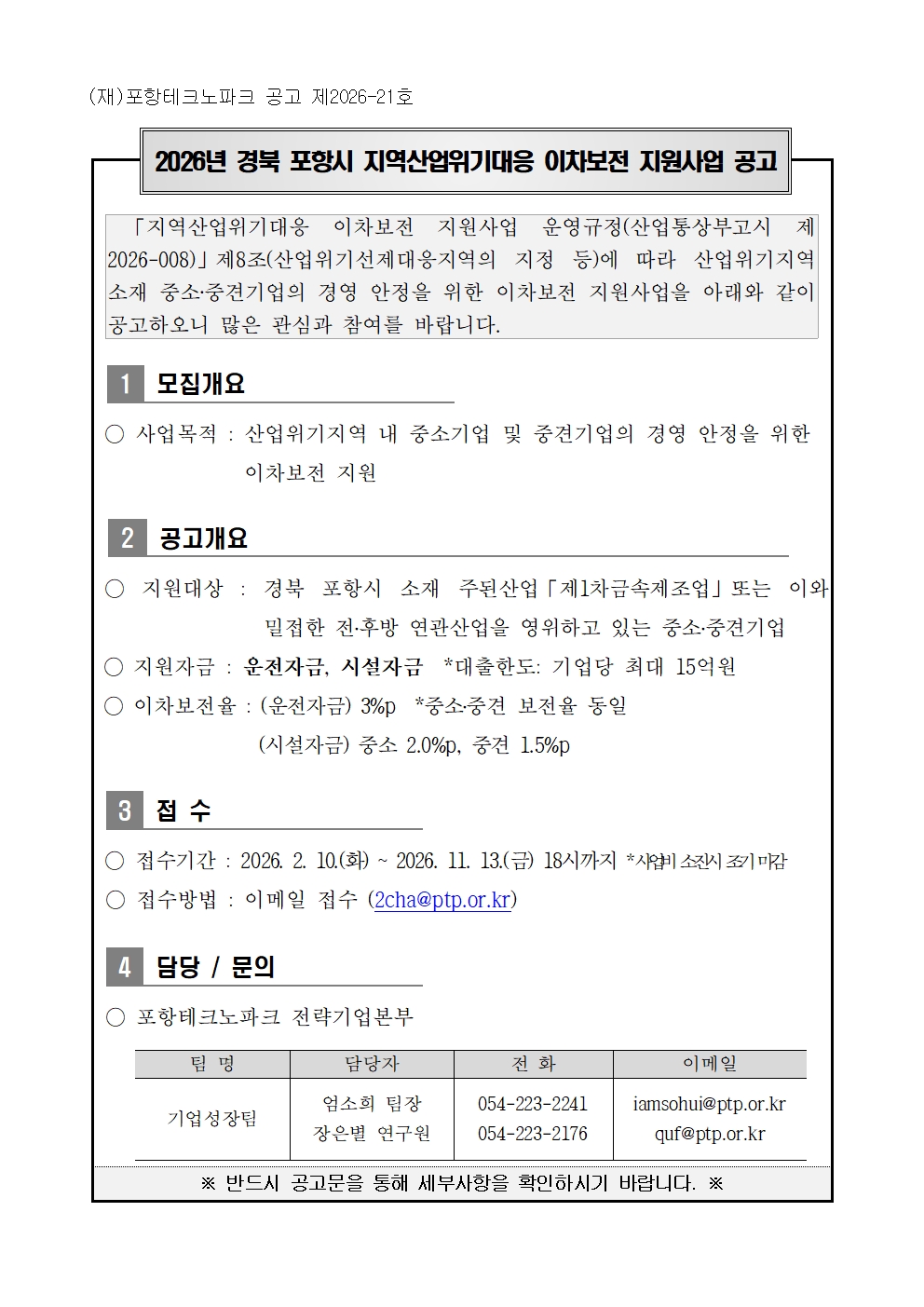 2026년 경북 포항시 지역산업위기대응 이차보전 지원사업 통합공고