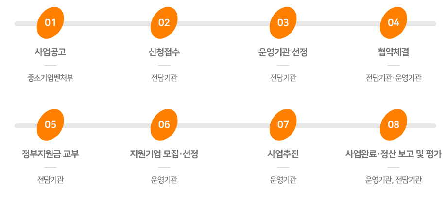 • 운영기관 모집·선정,사업관리 및 운영,구축지원,사업완료 점검,예산 집행 등의 업무수행
