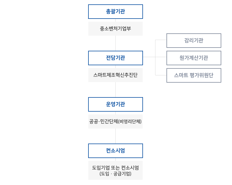 • 사업운영,정부 지원금 위탁운영 중소․중견기업 선정,전문인력 지원,추진점검,사업비 집행 관리,구축관리 등의 업무수행
